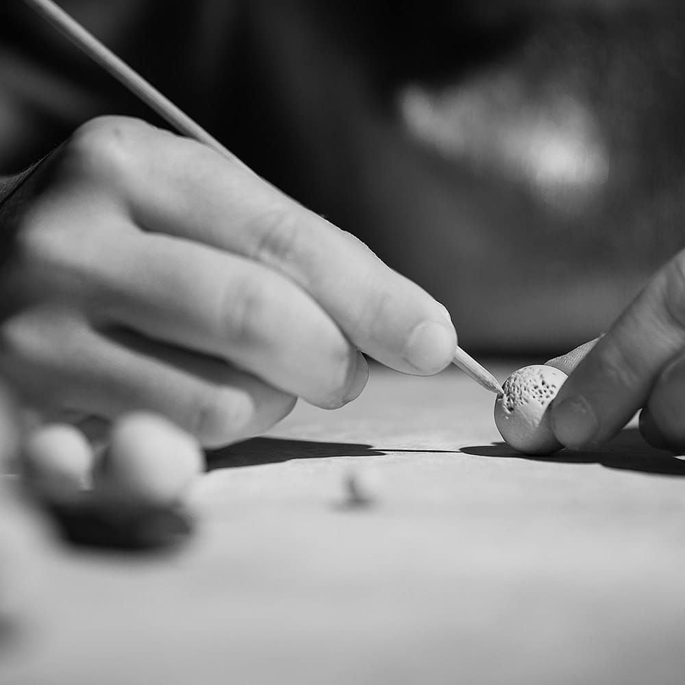 Maria Diana utilizza per le sue creazioni la porcellana, il grès e la ceramica, arricchendoli con materiali preziosi quali l’oro e il platino. Per la ricchezza delle tecniche di lavorazione questi materiali le offrono motivi per esplorare nuove frontiere espressive.